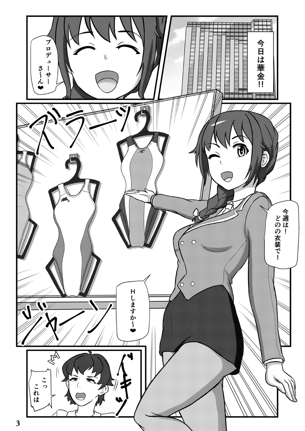 千川ちひろさんがプロデューサーのリクエストで競泳水着に着替えて